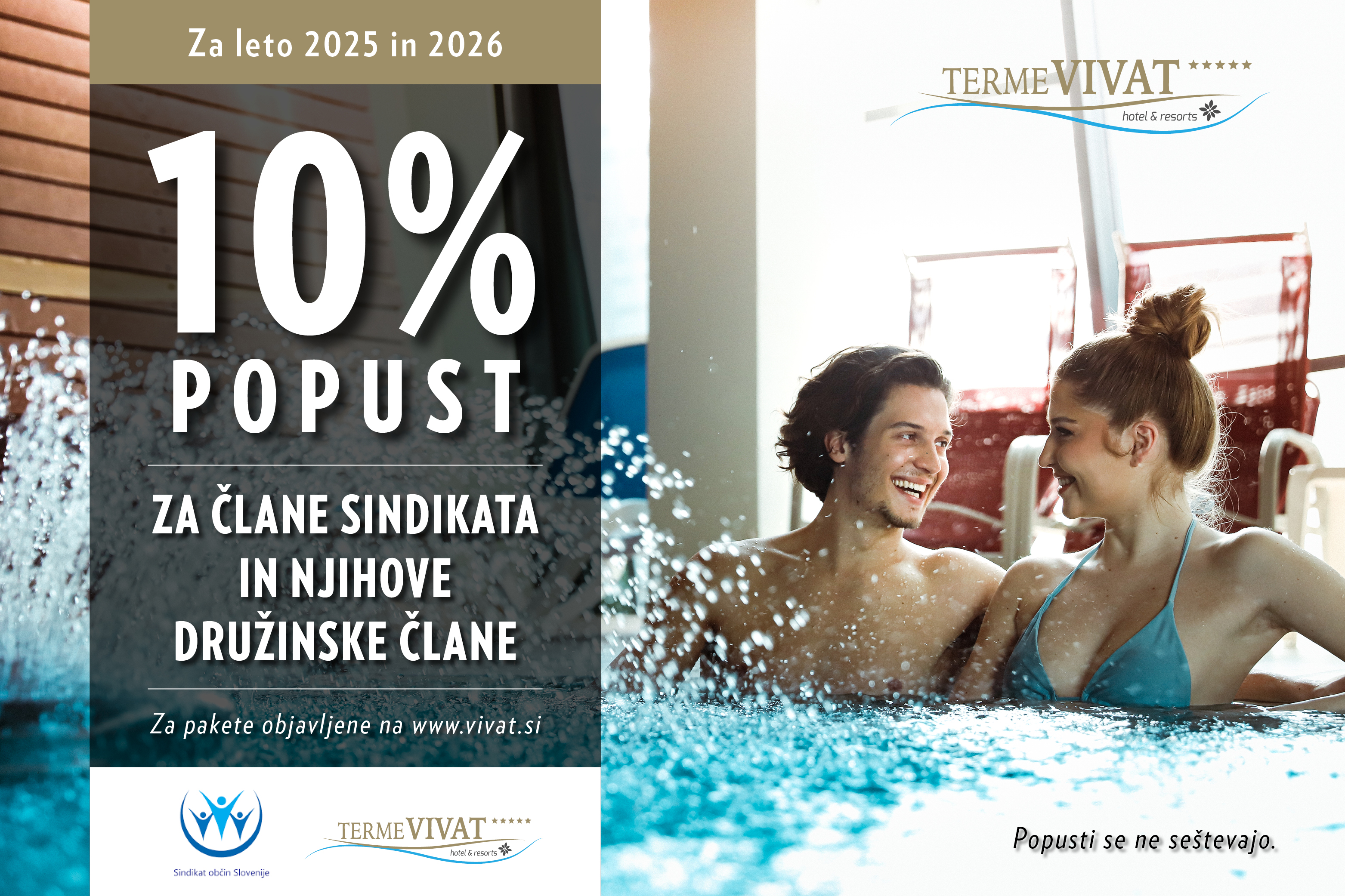 - 10 % popusta na vse pakete bivanja v letu 2025 in 2026 – VEČ.
